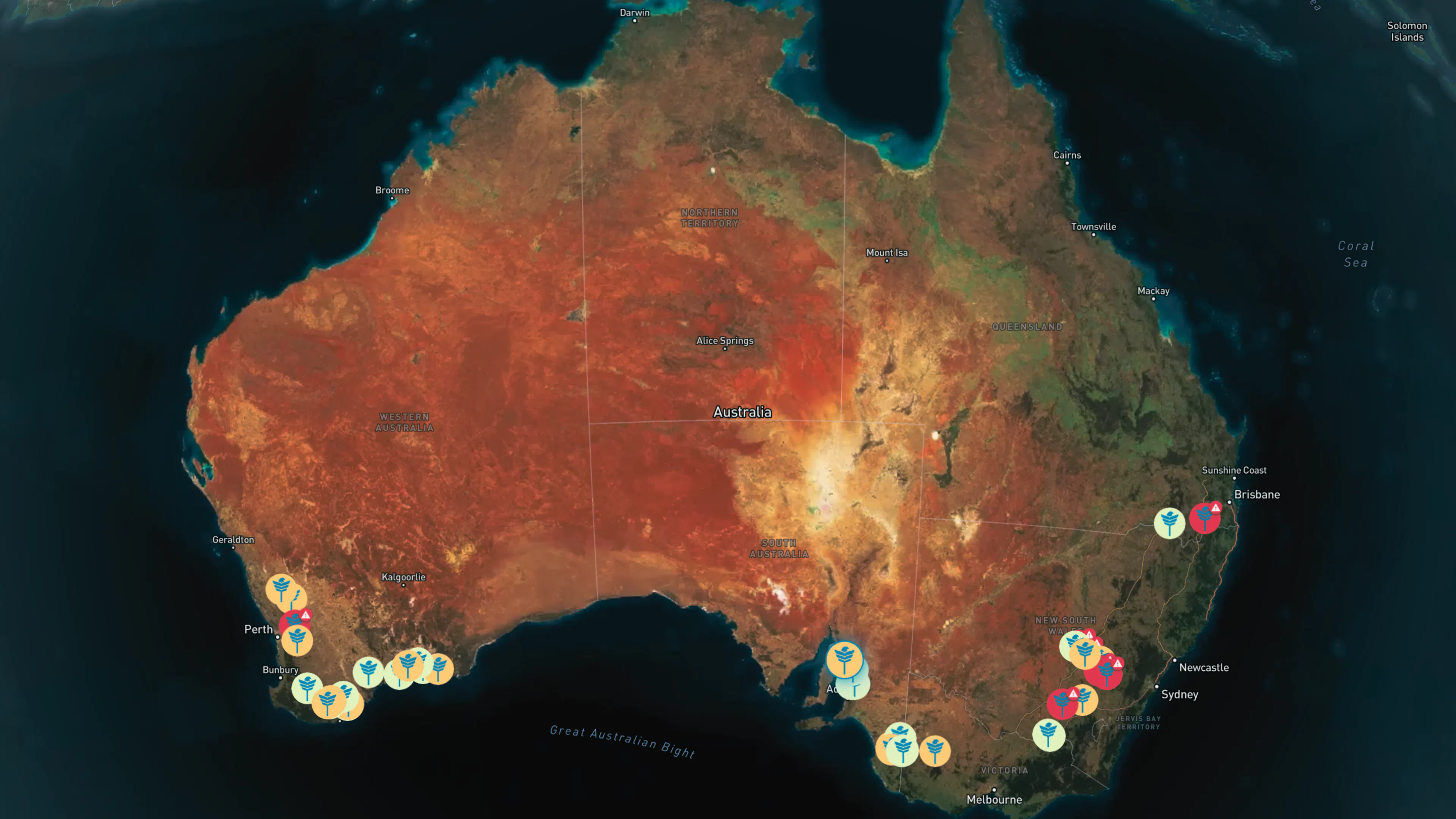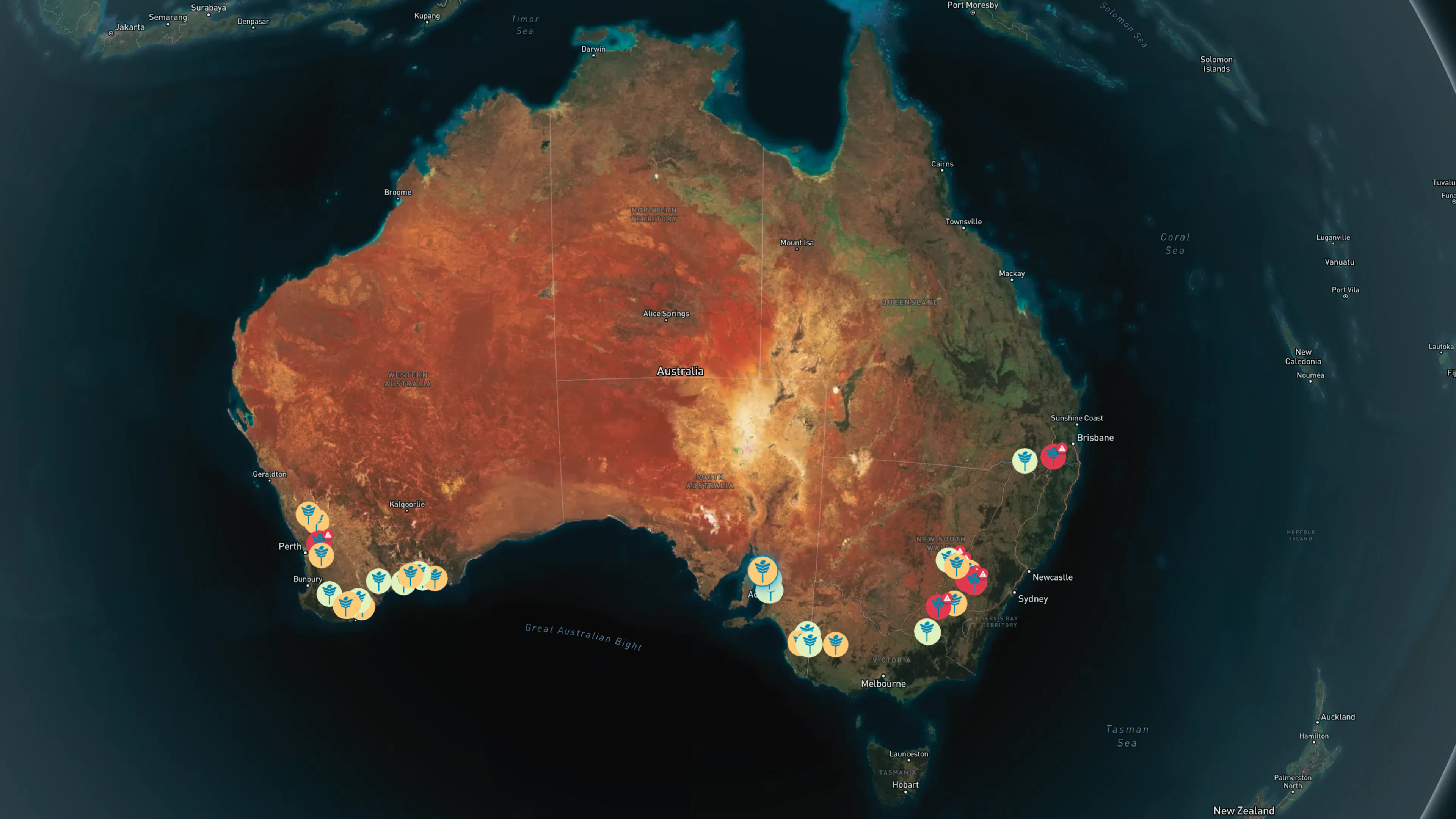 Each map icon represents a sensor around Australia. Sign up for free to see several more features alongside the spore loads.